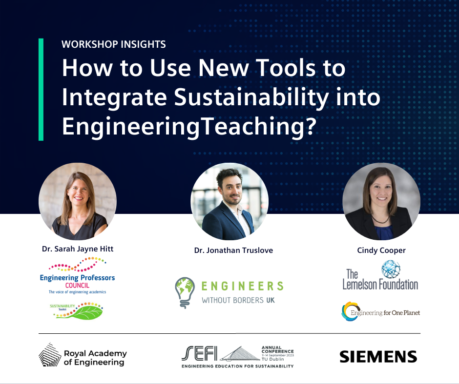 The European Society for Engineering Education (SEFI)’s Annual Conference was held this year in Dublin under the theme “Sustainability in Engineering Education.” The UK’s Engineering Professors’ Council were present with two key partners to deliver a fascinating workshop on this year’s theme, “How to Use New Tools to Integrate Sustainability into Engineering Teaching?”.