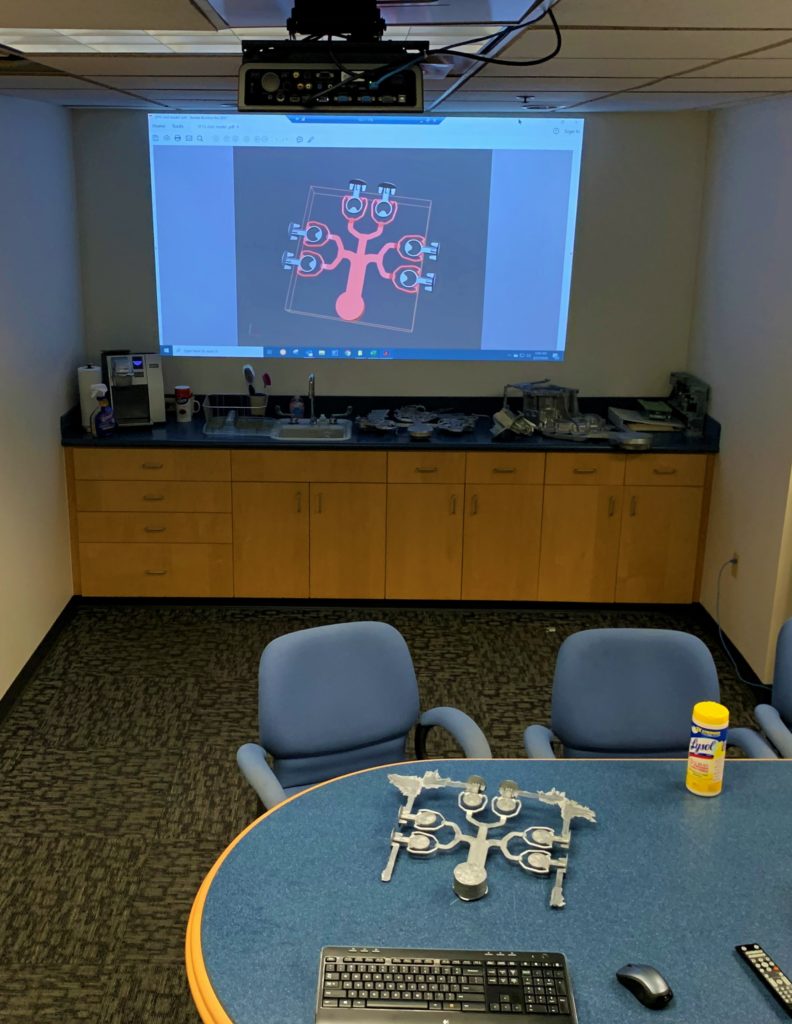 Berry briefed his staff on the project and the team went to work immediately. Brian Chatlosh, a lead designer at Die-Tech & Engineering with decades of experience, had already worked a full day. Still, he volunteered for the project and returned to his office and began modeling a preliminary design of the casting die.  “We had an RFQ at 5 o’clock in the afternoon and we were able to present a preliminary mold design at 9 PM to get approval to order material,“ Berry explains.