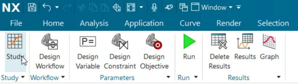 There’s an important step that needs to be taken before we can proceed. When the part has been opened in a new window, you need to select ‘Study’ from the top of the screen under Design Space Explorer. Taking this step will create a new folder where the tests that are performed will be stored. It’s a neat workflow hack to ensure you can navigate the NX dashboard with ease.