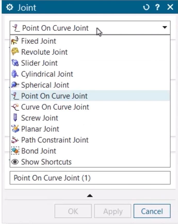 Each Rigid Group is going to move independently of one another; it is only until we add joints that they’ll be able to influence one another. Here are the types of joints you can add within NX: