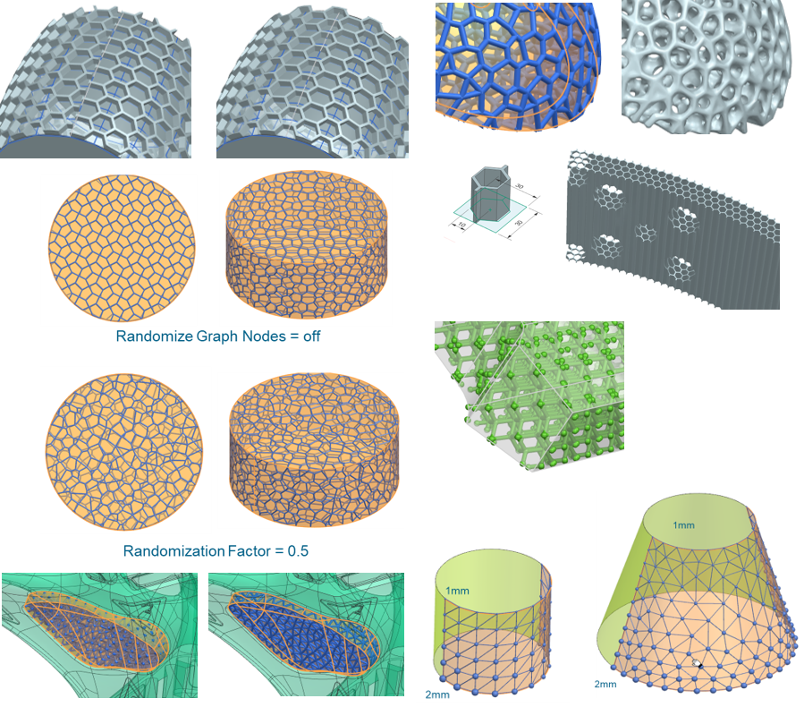 •Voronoi and Minimal surface (Gyroid) structures combined with robust implicit modeling methods