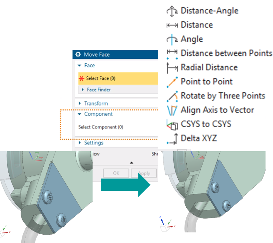 With this update of NX there is increased support for early design studies and concept development. With these updates you can “Move Component” with “Move Face” which provides simultaneous part and assembly changes. There is also a “History Free” mode which allows fast changes to explore new options in industries focused on short lifecycle products.