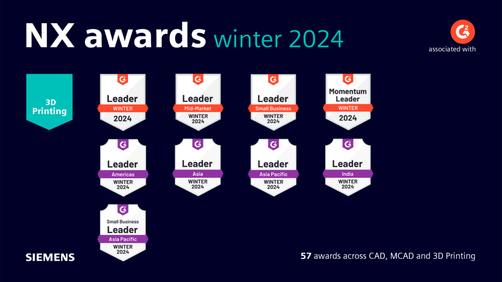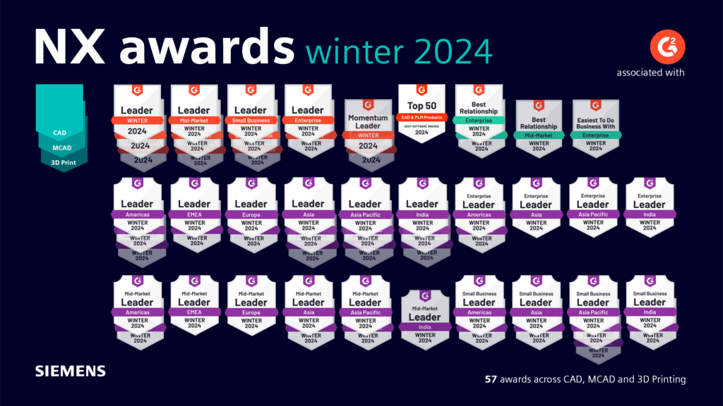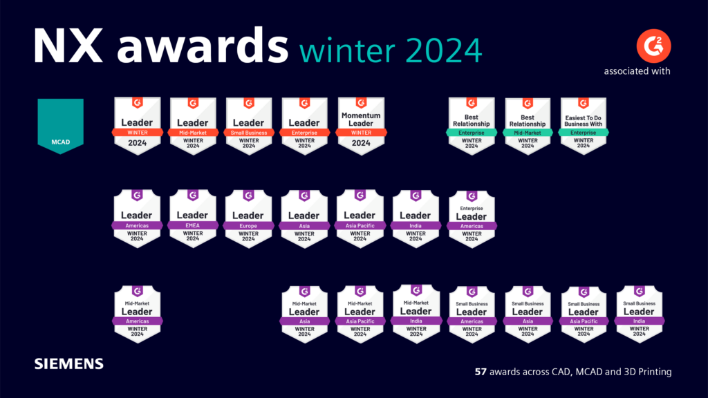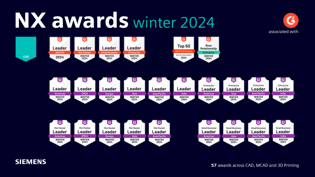 Here are all 57 awards that NX has won in Winter 2024. We’ve broken them down into the three categories of Computer-Aided Design (CAD), Mechanical Computer-Aided Design (MCAD) and 3D Printing below as well.