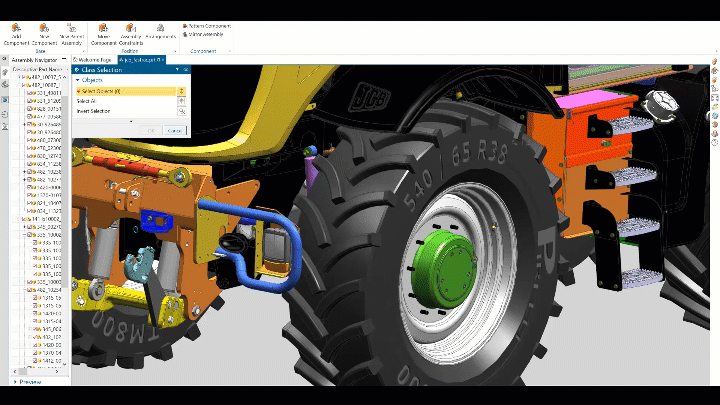 During this heavy Equipment series, we will be using a model of the JCB Fastrac, a fine-tuned vehicle used across the agricultural landscape. The multi-use nature of the model in the real-world where the scope for configuration is huge provides a perfect example of how integrated, associative visualization can dramatically speed up your workflow. Using NX Render can reduce your time to 1st render by up to 30% and time to second render by up to 90% compared to exporting to a 3rd party tool.