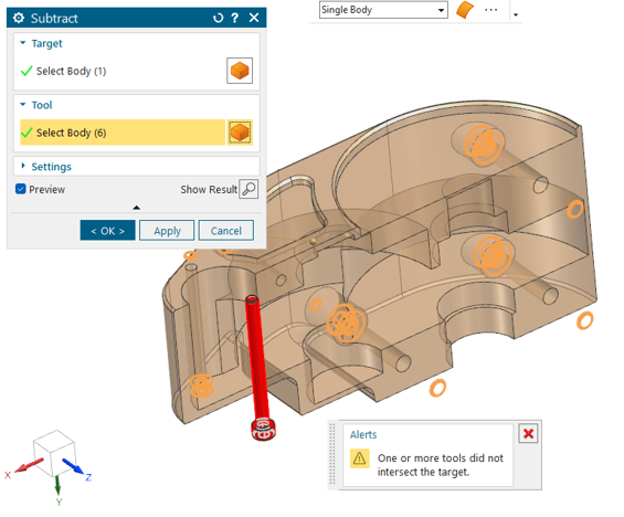 Feedback from the NX community indicated the need to focus on multi-body Booleans. We have taken this onboard and created an alert that notifies users when selected bodies in an assembly don’t participate in a Boolean operation. The alert will inform you that a specific body didn’t intersect the Target, and will be shown in the Part Navigator. Any non-participating bodies will be highlighted, as shown in the following image. It’s another new capability to ensure you continue to optimize your workflow to create the best possible solutions.