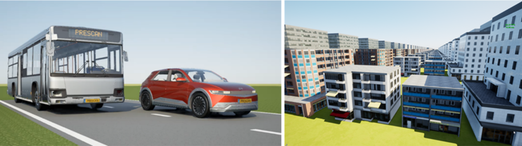 Simcenter Prescan has an extensive library of assets which is regularly updated based on customer requests. The Hyundai IONIQ and Hino Blue Ribbon bus have been added to the Simcenter Prescan vehicle library. Several new building models have been added to enrich the city modeling experience. Furthermore, infrastructure objects (e.g., cement guardrail, sound absorbing wall, fence etc.,) have been included to provide additional variation for performance and accuracy testing of sensor perception systems.