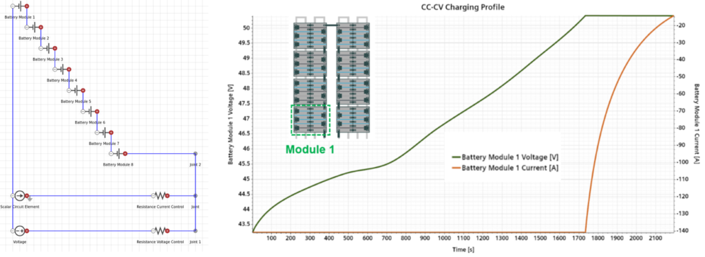 - Branch 1: Models the constant current phase of the charging procedure.