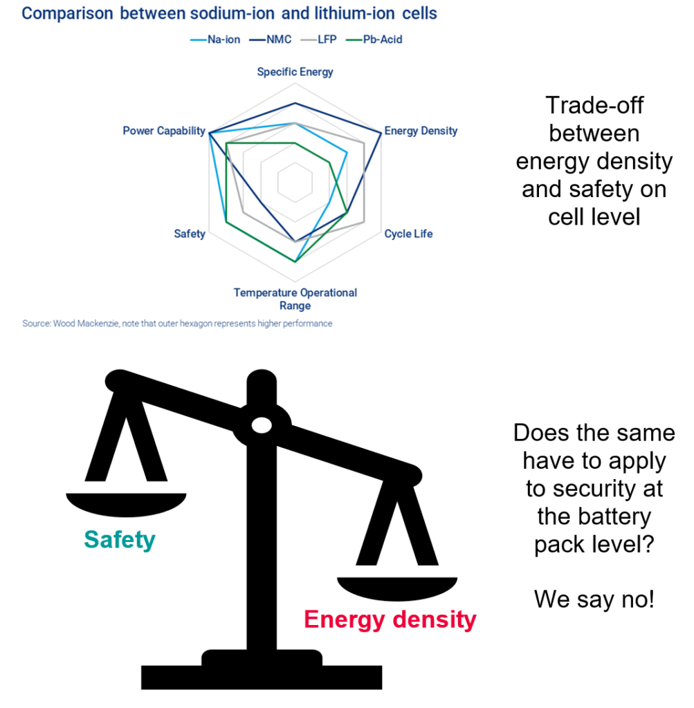 Mixing sodium battery cells with additional battery cells with higher range and performance chemistry cells could be a good compromise, but cells with very high performing cell chemistry like NMC or NCA raise the safety issue again. So is battery safety the price we have to pay if we want to drive long distances?
