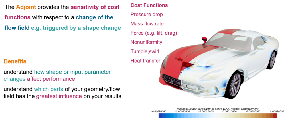 1. Then we assess something called the adjoint: A mathematical function that gives us an idea of which local area has which impact on the cost function, e.g. the pressure loss or the flow rate.