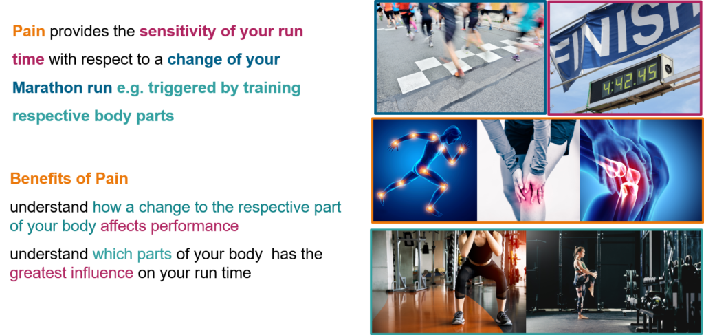 (You run one marathon after the other until all parts of your body are trained such that pain is minimized/sufficiently low and in return finishing times are the best possible within the given constraints – aka  your physiological preconditions