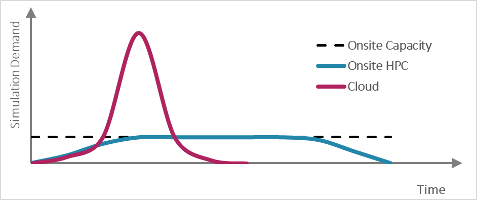 With cloud access, you can instantly increase compute capacity to meet simulation demand or possibly meet somewhere in the middle? A hybrid solution – supplement on-premise high-performance computing (HPC) with cloud burst capacity.