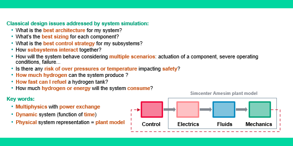 We can see that all the Hydrogen applications combine multiple physics simultaneously, such as controls, fluids, thermal, electrics or mechanics. They are typically “mechatronics” systems.