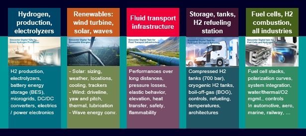 More into detail, Simcenter Amesim and Simcenter Flomaster are reference system simulation platforms that can be used for many hydrogen applications in various industries: