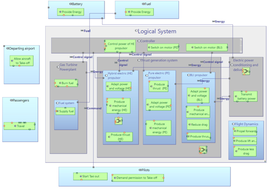 “Early” means we are still at a concept phase. Following the ARCADIA methodology [4], the authors have derived, from target operational capabilities, the logical architecture of a powertrain for a regional aircraft (ATR-42 type).