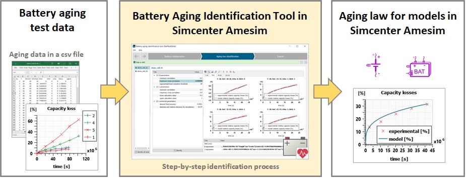 To overcome these challenges, Simcenter Amesim 2304 comes with the Battery Aging Identification Tool. This new feature allows users working on battery-powered systems to:
