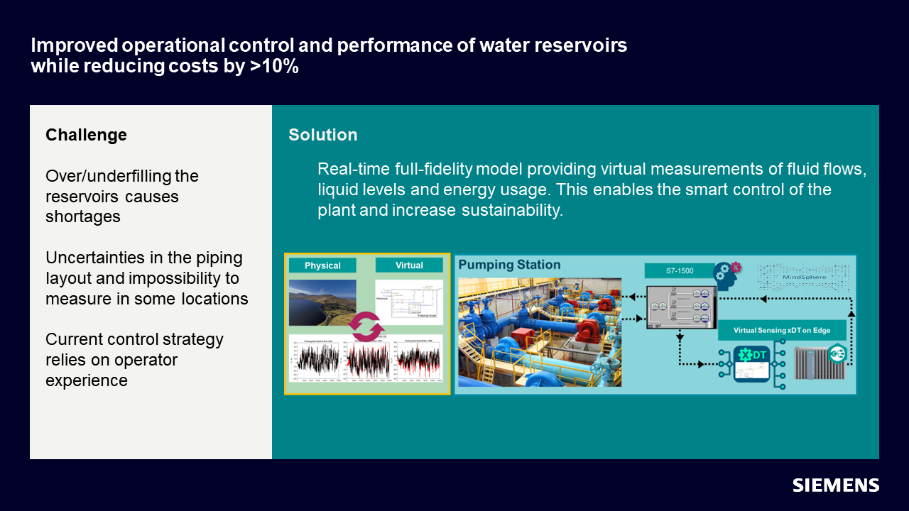 With the short computation time needed by nature, a real-time capable system simulation model together with MindSphere (the Siemens industrial IoT as a service solution) is a very powerful combination that can improve the efficiency of energy systems while being in operation. Almost every system simulation model, and when using Reduced Order Modelling (ROM) technologies even 3D Finite Element or CFD models could potentially be used as xDT as long as the outputs deliver valuable information for the operation.