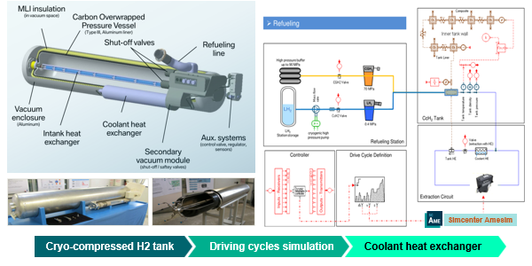 To reach the Hydrogen objectives, companies need the appropriate components (pressure regulators, valves, …), heat exchangers (including cooling systems or insulation of the tank walls for temperature control at various locations within the tanks), up to a detailed representation of the hydrogen tanks, which are not just equivalent volume chambers, but high technology components. The tanks for hydrogen applications are like the batteries for electric vehicles, they concentrate a lot of the value and challenges to solve (with temperature evolutions, wall insulation, weight, cost, safety, …) and they finally require a huge effort to fully understand how they behave.