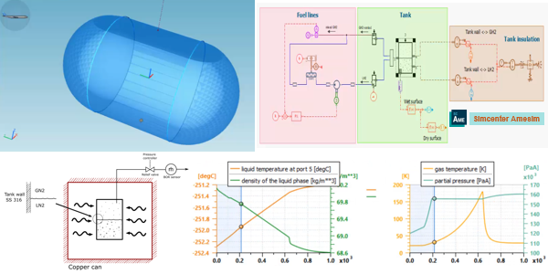 LH2 (liquid hydrogen) is much more complex to manage since it’s obtained at extremely low temperatures such as -253 °C. 🌡 So that thermal insulation of the tank walls becomes mandatory to prevent the boiling of the liquid hydrogen (raising its pressure drastically), also as a side-effect the freezing of the external parts of the cryogenic tank. That’s where System Simulation can help to investigate the insulation performances (number of layers, composite/metal, …) or the refueling/defueling times to get relevant results in few seconds of CPU-time.