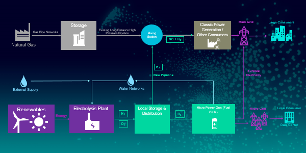 Looking at the global picture with the hydrogen transport, we can see it’s quite common to have long pipelines or piping networks for hydrogen distribution. Also for the water networks to go to the electrolysis plant, or for the natural gas networks to go the mixing station. These pipelines are long like several hundreds of meters or several kilometers. That’s why Simcenter Flomaster is appropriate for such investigations.