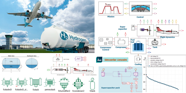 Using Simcenter Amesim and its various libraries and available apps enables you to model the various subparts of an aircraft quickly and accurately, such as propellers, fuel cells or turboprops and test their integration into a complete aircraft model. Regarding the results, hydrogen-burning turbo-propellers look like the most viable and quickest solution to reduce the aerospace carbon footprint. The adaptation of the system would be easier and the impact on total aircraft weight would be negligible regarding standard architecture. But to reach zero emissions, fuel cell propulsion architecture is a promising alternative with much more optimal energy usage delivered by hydrogen as a fuel. System Simulation can help to identify the fuel cell limiting factors, such as hydrogen storage and distribution, which lead to payload reduction. Also to improve the ultracapacitors’ specific energy and fuel cells system’s specific power to reach viable designs.