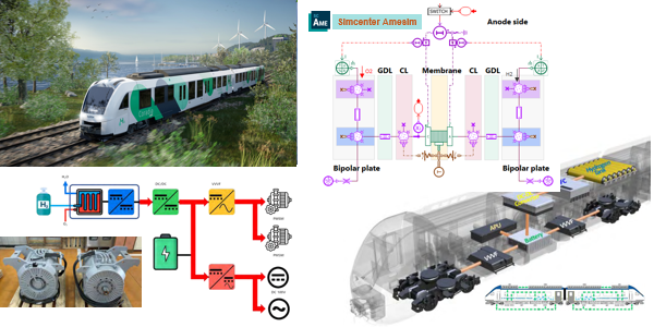 In the Railways industry, it’s the same approach used with System Simulation to address the Hydrogen challenges. It’s about the decarbonization of railway transportation, with the replacement of diesel trains by electrified ones. With some additional railways specificities (mission velocity profiles, acceleration / deceleration, traction and resistance, bogies/rails contact and friction, …) and constraints (auxiliary systems like HVAC / air-conditioning that consumes energy, regenerative braking, …). Also considering some switches in the operating conditions for the regional train performing not only as an electric train for routes with overhead power lines, but also as hydrogen and battery-powered variants. The use of fuel cells (so hydrogen) is needed when the lines are not connected to the grid.