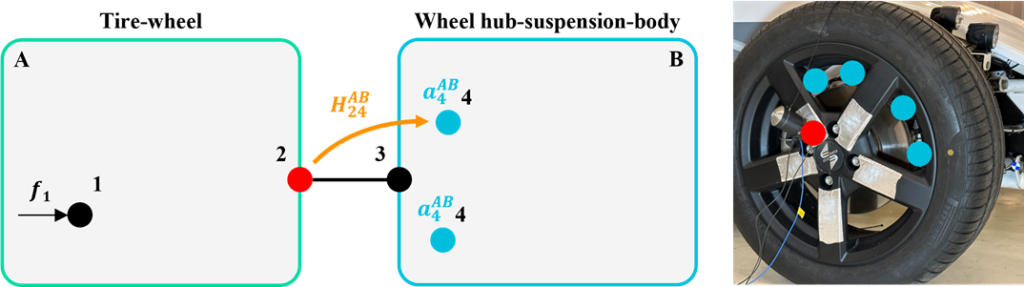 In a second set-up tire-wheel impedance FRFs are measured. Again, Virtual Point Transformation (VPT) is applied.