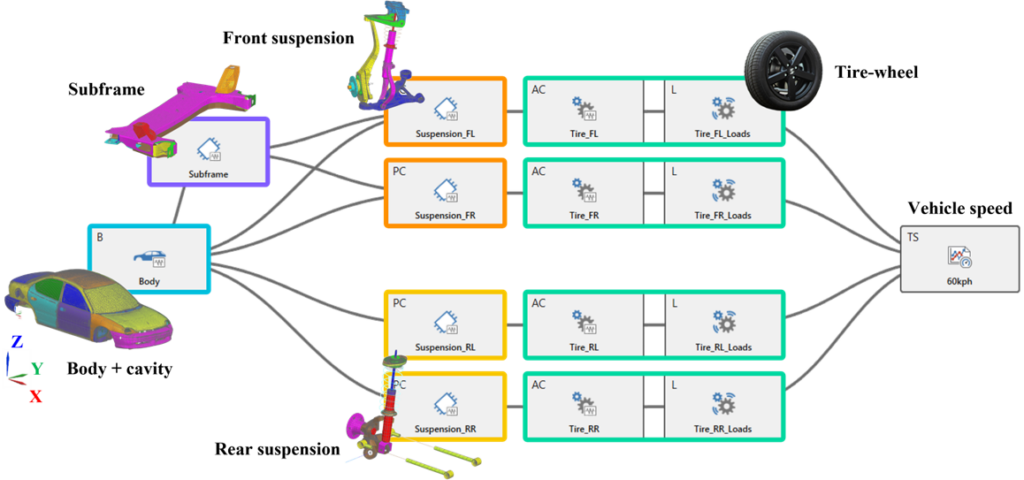 Luckily, in recent years, there has been rapid growth in the use of innovative TPA methodologies, particularly in the automotive industry, to virtually combine components into assemblies and predict their noise and vibration performance. These methodologies have proven to be powerful tools for engineers to evaluate component modification scenarios and assess the overall NVH (Noise, Vibration, and Harshness) performance of vehicles efficiently. Let me show you an example of what we have done on road noise and catch together a glimpse of magic.