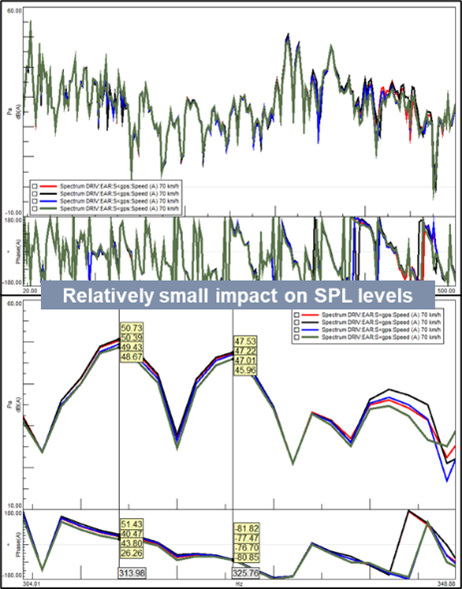 The effects of these modifications on the component Frequency Response Functions (FRFs) are examined. The FRFs very limited changes in peak location and amplitude, so is the impact on the driver’s ear sound pressure levels, with a reduction of around 1.5-2 dB(A) observed for the two key peaks of interest.