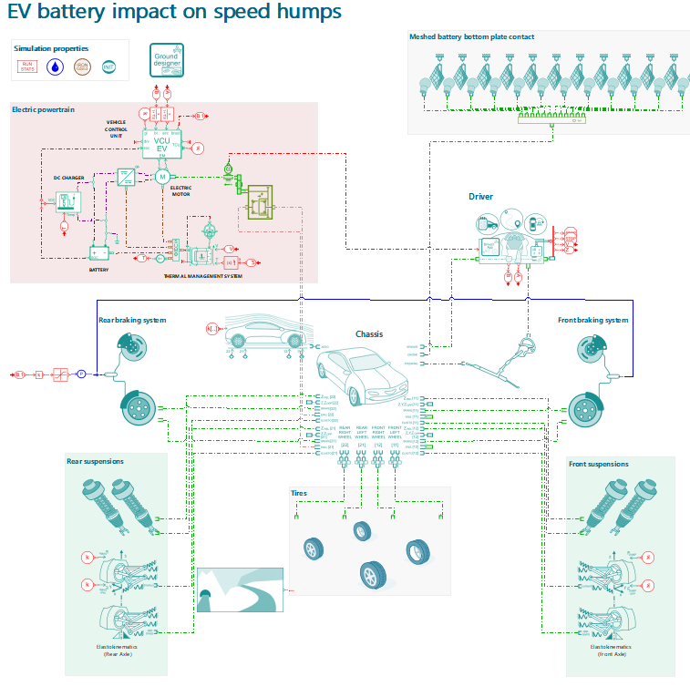 Simcenter Amesim offers very valuable capabilities when developing and integrating components in electric vehicles. It allows you to assess key performance characteristics like range, vehicle performance, thermal performance and battery lifetime. In this blog, we will show demo models developed in Simcenter Amesim that help to analyze the impact of an electric vehicle’s battery on a speed bump, depending on the velocity of the car and the height and shape of the bump.