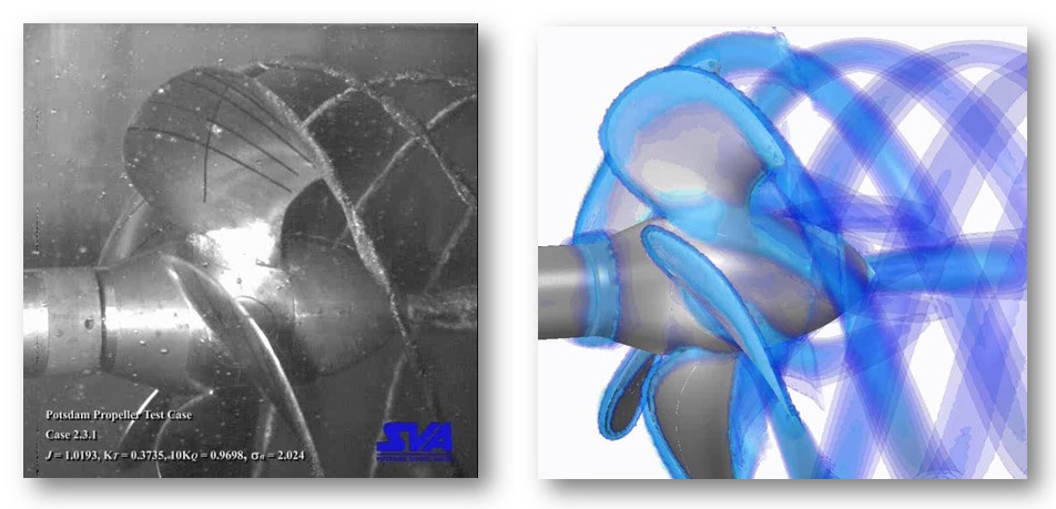 The data related to the benchmark test case was published by Schiffbau-Versuchsanstalt Potsdam GmbH (SVA) to test and validate simulation methodologies. A significant portion of the work undertaken by the SVA relates to research projects. With its three departments, Resistance and Propulsion, Propellers and Cavitation, and Maneuvering and Waves, the SVA covers the entire spectrum of modern shipbuilding testing practice.