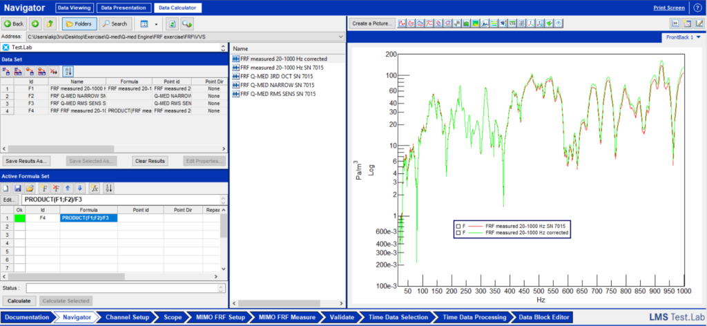 Figure 11 Calculation of corrected FRF in Navigator, Data Calculator.