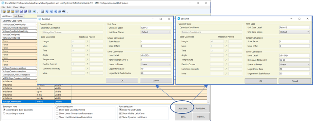 As highlighted in Figure 7 and in Figure 8, the Q-MED FRF has V/m^3 unit. If this unit is not automatically present in the Data Block Editor Y-axis units, the user shall add it in Simcenter Configuration and Unit System 2.2 or latest version 3.0 as shown in Figure 9.