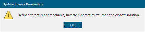 In this example, I set limits on the appropriate joints to mimic the robot’s physical constraints and received the following prompt that the target could not be reached.