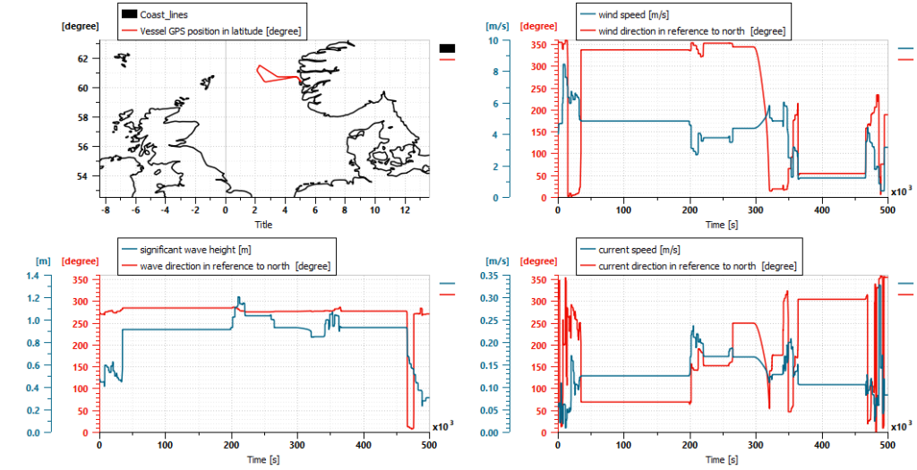 In Simcenter Amesim 2020.2, it became possible to simulate even more realistic real-world scenarios with the added sea route planning feature further complemented with realistic weather conditions based on expertise from OSE Engineering in Simcenter Amesim 2022.1. Combining the digital twin of the vessel propulsion system, the variable sea conditions, weather and the sea routes, Simcenter Amesim makes it possible to optimize trip planning as well as possible and find the best balance between Estimated Time of Arrival (ETA), fuel consumption and CO2 emissions.