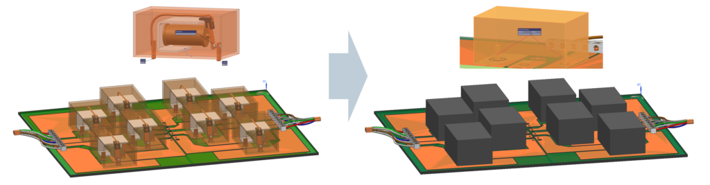 The use of electrical elements to simplify more complex components (e.g. a relay) without interrupting the current flow for joule heating simulations.