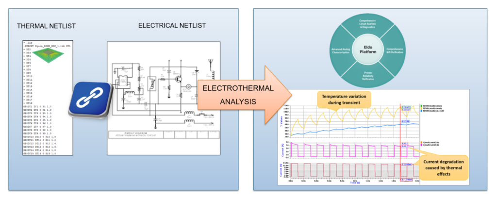 How the thermal netlist together with an electrical netlist can be used in electro-thermal system tools.