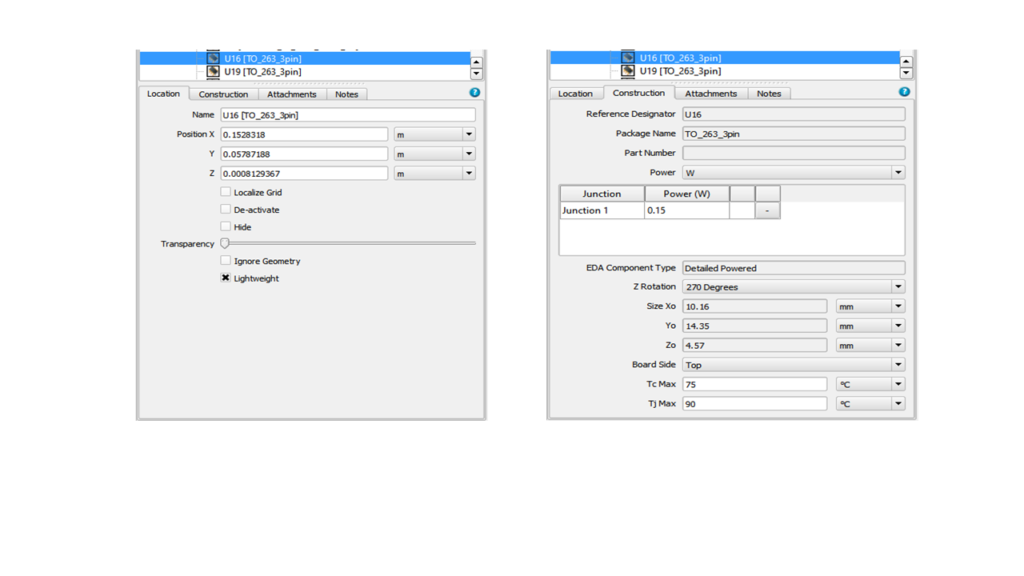 Additional parts such as heatsinks, thermal vias also have their own fields in property sheets. Daughter boards have property sheets within the motherboard structure.