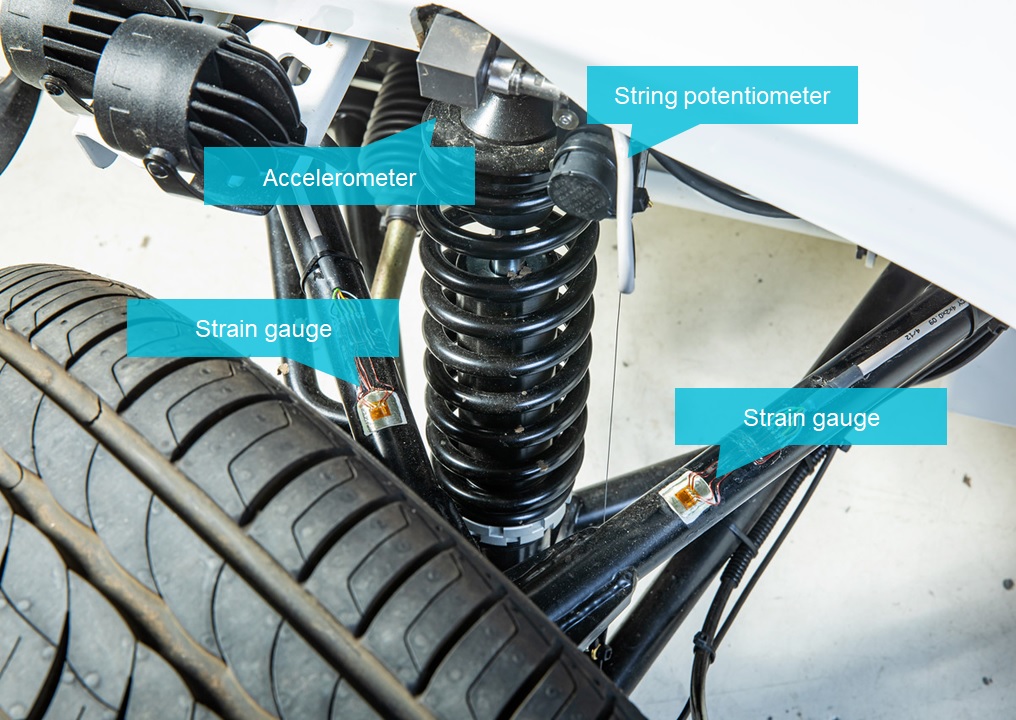 One specific application that is a good example of where you need to measure a wide of different types of sensors, is durability testing. To get an idea about the durability performance of your vehicle, you typically need to measure strain gauges, accelerometers, displacement sensors, force cells, vehicle CAN bus data, thermocouples, wheel force transducers, GPS location, and in some cases even video images.