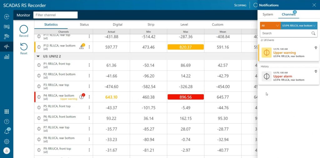 During the preparation phase, you can use for example the ‘Single channel’ view to troubleshoot your setup, check the cable wiring, or correct any sensor parameters if needed: