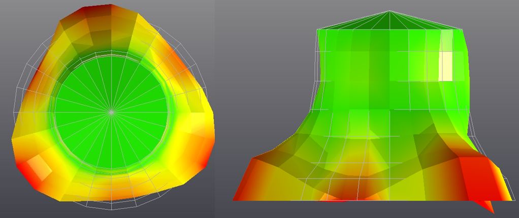 In order to visualize the distinct vibration patterns or mode shapes, we performed an impact test in combination with our Simcenter modal analysis solution. To get accurate results up to 1200Hz, we measured at 7 different heights and on every 15 degrees over the total circumference – a total of 168 measurement locations.