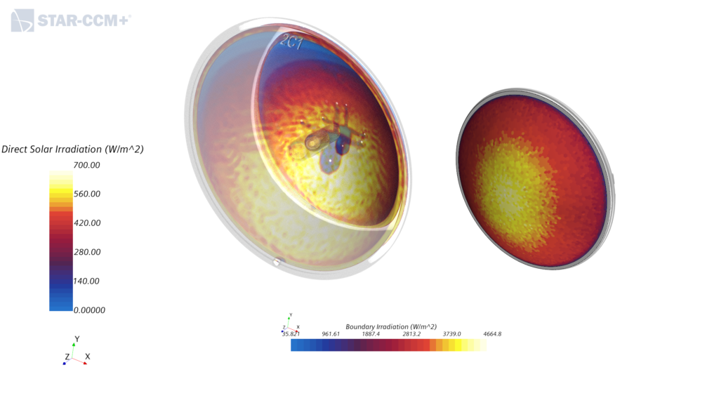 Photon-Monte-Carlo is a statistical method for solving radiation; it’s the fastest and most accurate approach available and is especially important when needing to model refraction and reflection. This is necessary when considering the design of modern headlamps, which have multiple radiation emitting sources. These, along with the sun, can create hot spots as the light is reflected and refracted, which can damage the headlamp. Now you can accurately predict these hotspots and modify the design appropriately.