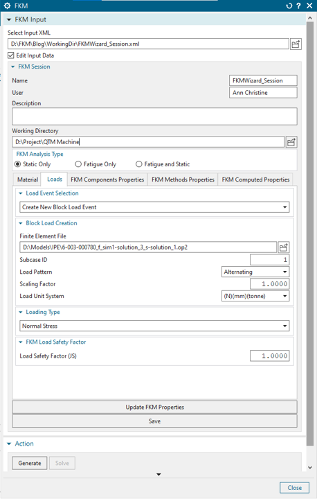 By just clicking “Update FKM Properties,” the values are generated according to the FKM guidelines. She now has the values she requires to set up the Durability Simulation, and she can save the wizard session. Saving the wizard ensures that the same analysis can be set up from the input data at any time and will always be the same.