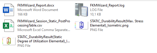 With just the selection of the relevant results and perspectives, a full report is generated automatically, containing the results, the setup and modeling information, as well as an overview of the computed FKM Parameters. All that the customer needs is in one folder: