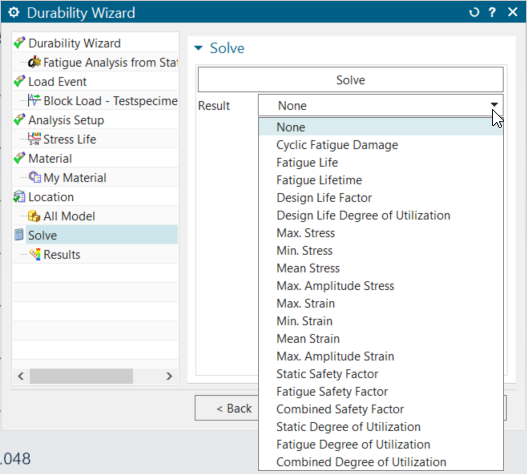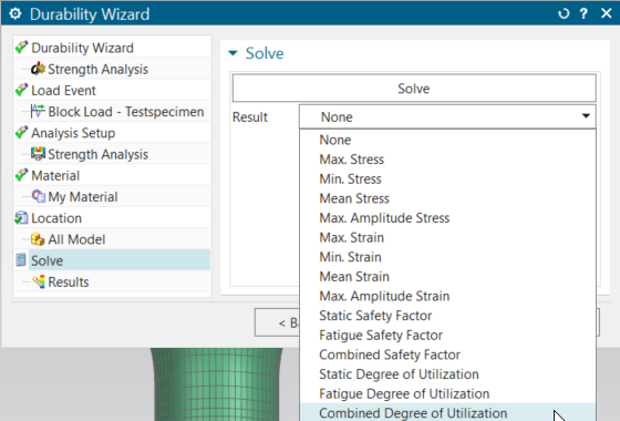 The tool is completely integrated into the Simcenter Specialist Durability tool. This means a durability solution is created in the simulation file once an analysis with the wizard is created and performed.