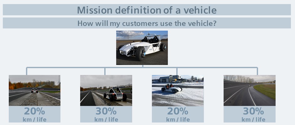 To answer this question, we need to first identify the operational environments of the vehicle. The example below shows four effective environments respect to distribution in total life time from a specific market.