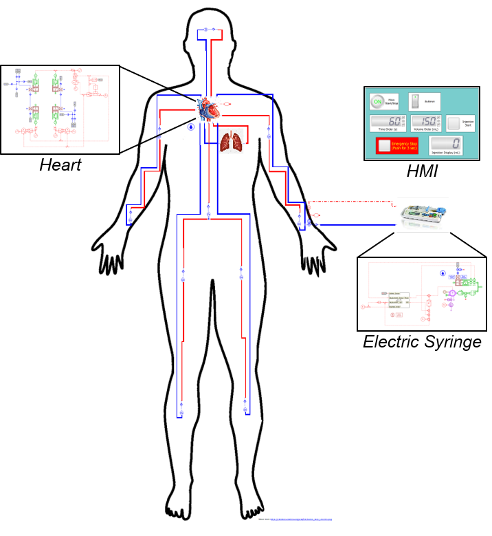 We all have suffered in one way or another from the pandemic. We also all understood the importance of medical research and development, science and the World Health Organization to fight this crisis in a comprehensive and sustainable manner. And here again, System Simulation can be an asset to shorten research lead times, reduce development costs and make medical products more affordable and reliable. Here is a simulation of the human body used as boundary condition for an anesthesia injection pump model. The anesthetic drug injected to the body with an electric syringe is regulated based on the heartbeat and the blood pressure. Different patient physiognomy and their drug reaction can be easily assessed and the reliance on the surgeon to monitor and control the injection rate is decreased.