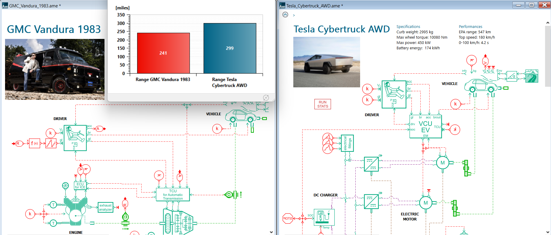 The A-Team used to move around with a GMC Vandura which quickly became a pop culture icon. And if the A-team would still operate today, it would probably have replaced the Vandura with a 9mm rounds bulletproof Tesla Cybertruck. While the Simcenter Amesim vehicle database doesn’t feature both vehicles yet, it includes many different vehicles that the GMC can be compared to (Lucid Air, Tesla 3, Volkswagen ID4, …). Anyways, below we compare The Vandura and the Cybertruck from a range point of view. The comparison is made over a drive from Santa Clarita, CA, USA to Santa Barbara, CA, USA using the Simcenter Amesim route planning tool.