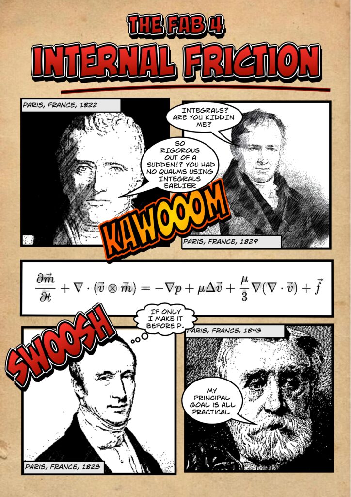 And while he was breaking bad on the mechanical side, things were not all roses on the hydrodynamics front for Navier either. While stuffed with ingenious ideas – Navier’s derivation of the fluid mechanics equation was not above and beyond all doubts – at least not at the time. And not in the eyes of a radical supporter of a rigid molecular approach: Poisson.