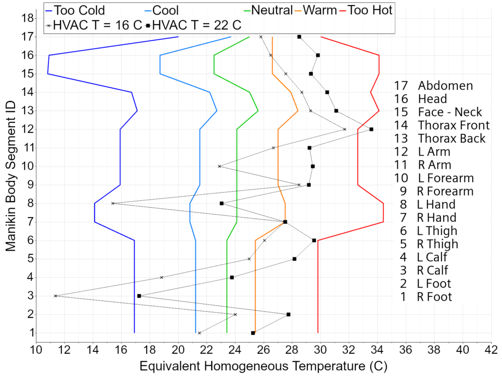 Independently of how hyped, flamboyant, or geeky-feature-packed modern EVs might be, they all go through a cycle where each kilowatt-hour of chemical energy stored in the battery is converted to kinetic energy and heat, until there is nothing left to convert any more. As shown in multiple studies (i.e., Buhmann et al.), one of the most important specs that can make or break an EV purchase for the average consumer is the real-world range. This implies that OEMs must design vehicles that feature the smartest possible energy management strategy to make the best use of each and every kilowatt-hour of chemical energy. Cabin comfort studies have become a key part of this challenge since the Heating, Ventilation and Air Conditioning (HVAC) may draw a significant amount of energy to keep passengers in a comfortable state.