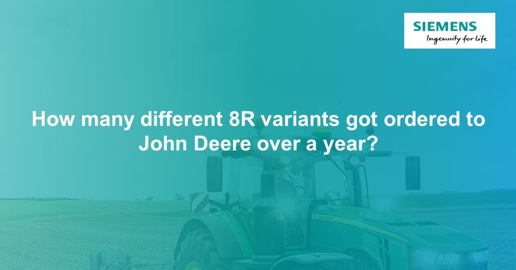 Consequently, the common trend for all the heavy equipment manufacturers is the increasing number of configurations of the same machine model. One remarkable example comes from John Deere. Over a year, the company’s customers ordered more than 7800 different configurations of the 8R. On average, each configuration got built only 1.5 times (Source: Bloomberg).